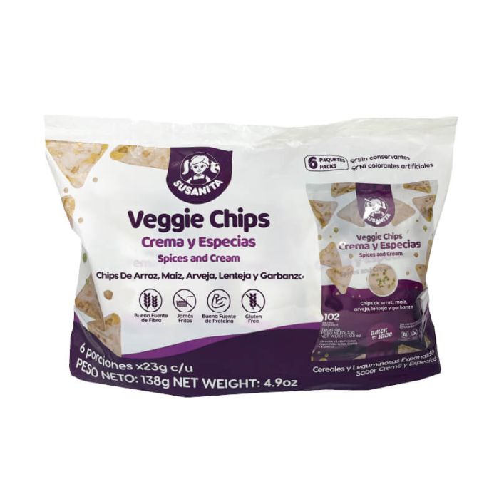| Description | Chips De Cereales Veggie Chips Susanita Sabor A Crema Y Especias X 23gr X 6 Paquetes |